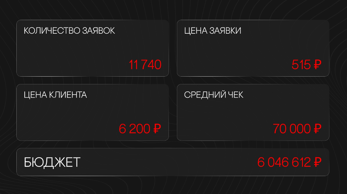 – привлекали заявки по 515₽ при среднем чеке на изделие 70.000₽